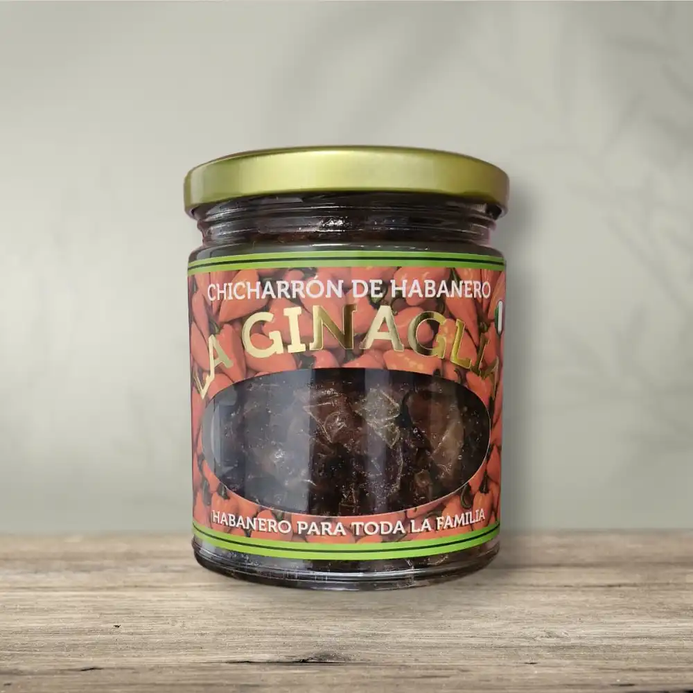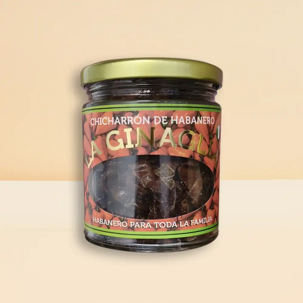 Chicharrón de Habanero La Ginaglia, con todo el sabor, pero 80% menos picoso que el habanero normal. Puedes comprar desde una pieza o hacer pedidos por mayoreo.
